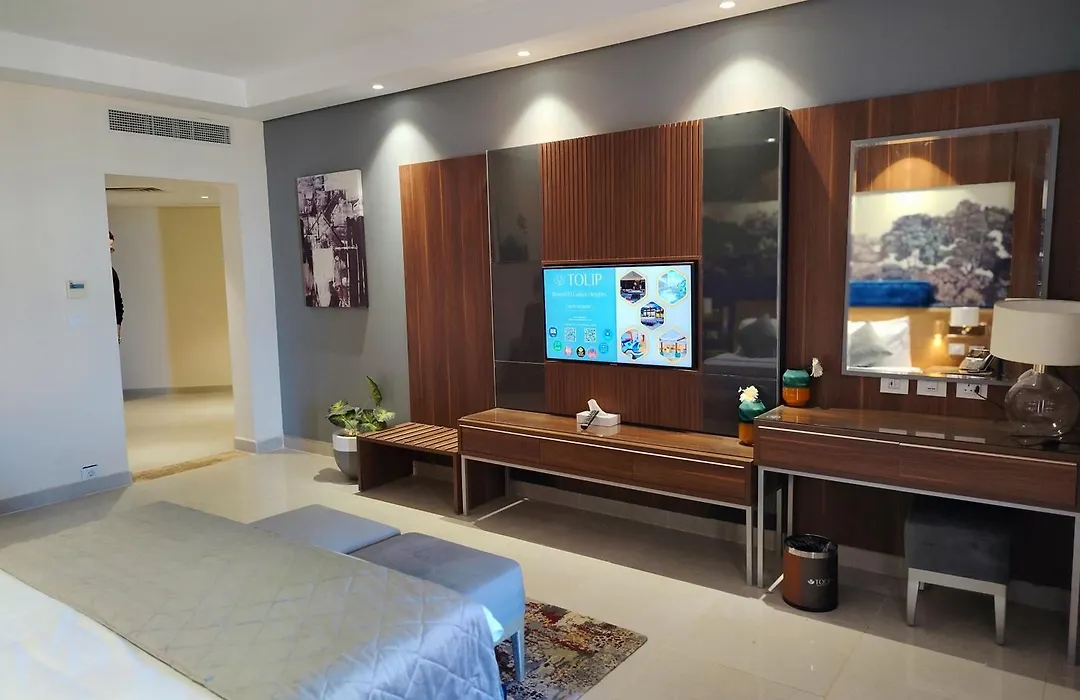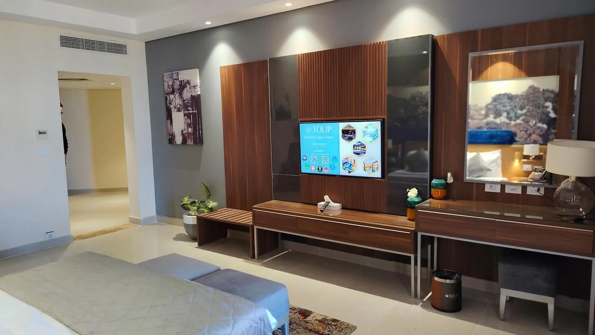 Tolip Resort El Galala Heights din Ain Sukhna oferă camere cu un balcon cu aer conditionat, precum și televiziune cu canale prin satelit. Camerele din această cazare sunt dotate cu un ceainic electric și echipamente pentru cafea/ceaiului. Camerele au o toaletă separată și un duș, precum și un uscător de păr și prosoape de baie. Oaspeții se pot bucura de vedere la mare de la acest hotel.